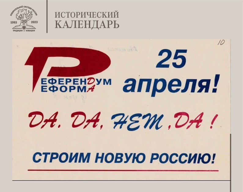На фоне конституционного кризиса 1992–1993 годов было принято решение о проведении Всероссийского референдума. Информационная кампания в СМИ породила символическое название референдума по лозунгу предполагаемых ответов на четыре вопроса: «Да. Да. Нет. Да» ( https://youtu.be/benjseF0fK8 )