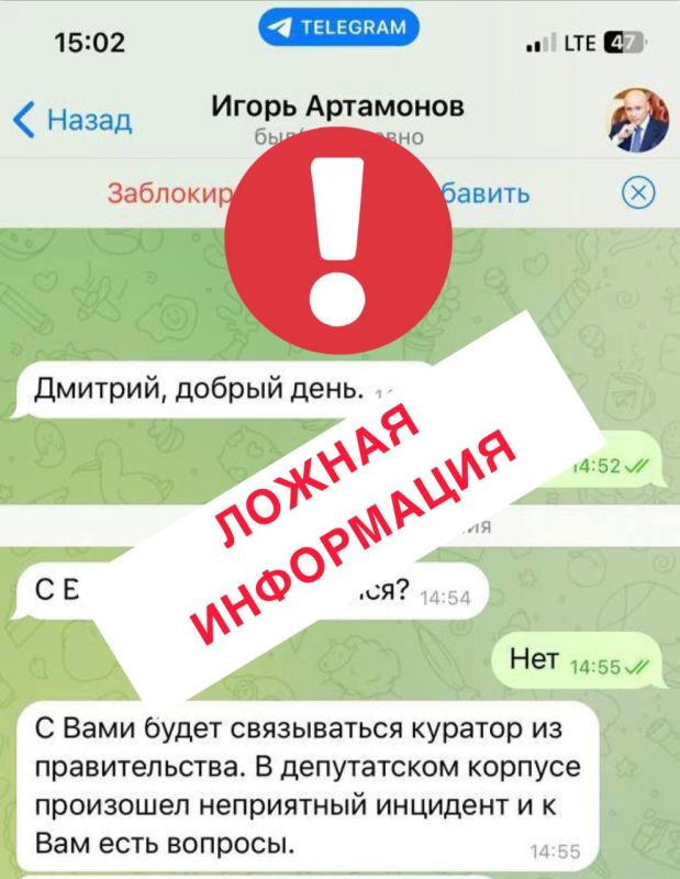 Мошенники снова подделали аккаунт губернатора Липецкой области Игоря Артамонова. От имени главы региона они пишут некоему Дмитрию (вероятно чиновнику), которого просят ответить на звонок от куратора облправительства.
