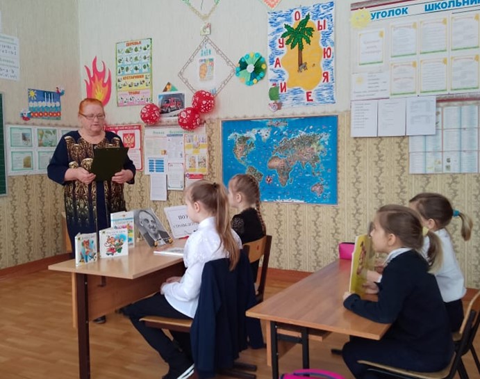 Заведующая Яблоневским филиалом познакомила детей с интересными факты из жизни и творчества С. Михалкова, о том, что первое стихотворение Серёжа Михалков сочинил в возрасте 9 лет. И даже опубликовал его в собственноручно изданном домашнем журнале. Позже его стихи и заметки выходили в журналах «Огонёк», «Пионер», «Прожектор», в газетах «Комсомольская правда», «Известия», «Вечерняя Москва», «Правда». В 1935 году было опубликовано любимое произведение многих поколений детей – поэма «Дядя Стёпа». Рассказала о том, что поэт является автором двух гимнов – СССР и Российской Федерации, а также автором эпитафии на могиле Неизвестного Солдата у Кремлёвской стены "Имя твоё неизвестно, подвиг твой бессмертен". Дети читали интересные на их взгляд стихи. Дружно отвечали на вопросы литературной викторины по произведениям писателя, показав хорошие знания. С удовольствием нарисовали интересные рисунки для конкурса "Герои книг Михалкова". Творчество С.В. Михалкова — это достояние страны. Он великий детский поэт. В своих произведениях передаёт детям всё хорошее, доброе, учит, как нужно поступать правильно.