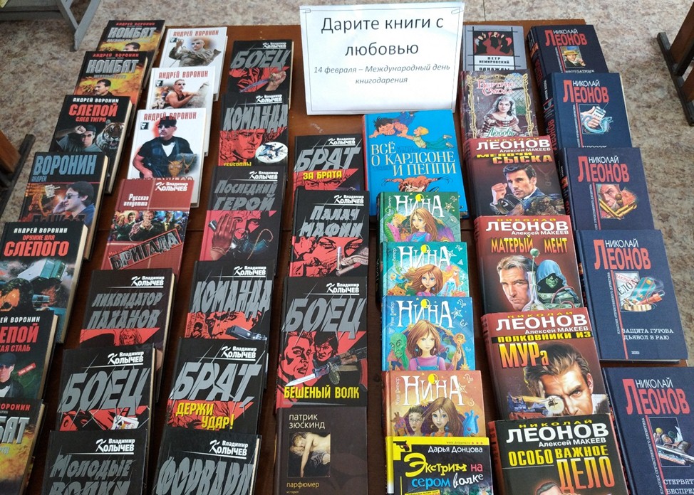 Активными участниками акции стали неравнодушные жители села - Иванова Е.С., Сушков С.В., Сидорова Л.И. и др., которые подарили уже прочитанные личные книги в библиотеку. Среди подаренных книг детективы известных авторов таких, как А. Воронин, Н. Леонов, В. Колычев, которые пользуются большим спросом среди читателей, а также художественные книги для детей и конечно женские романы. Подарки читателей неоценимы для библиотеки, специалист Куликовского филиала выражает глубокую признательность читателям, откликнувшимся на призыв, за преподнесенный урок любви к книге и чтению. Фонд Куликовской библиотеки пополнился на 41 экземпляр.