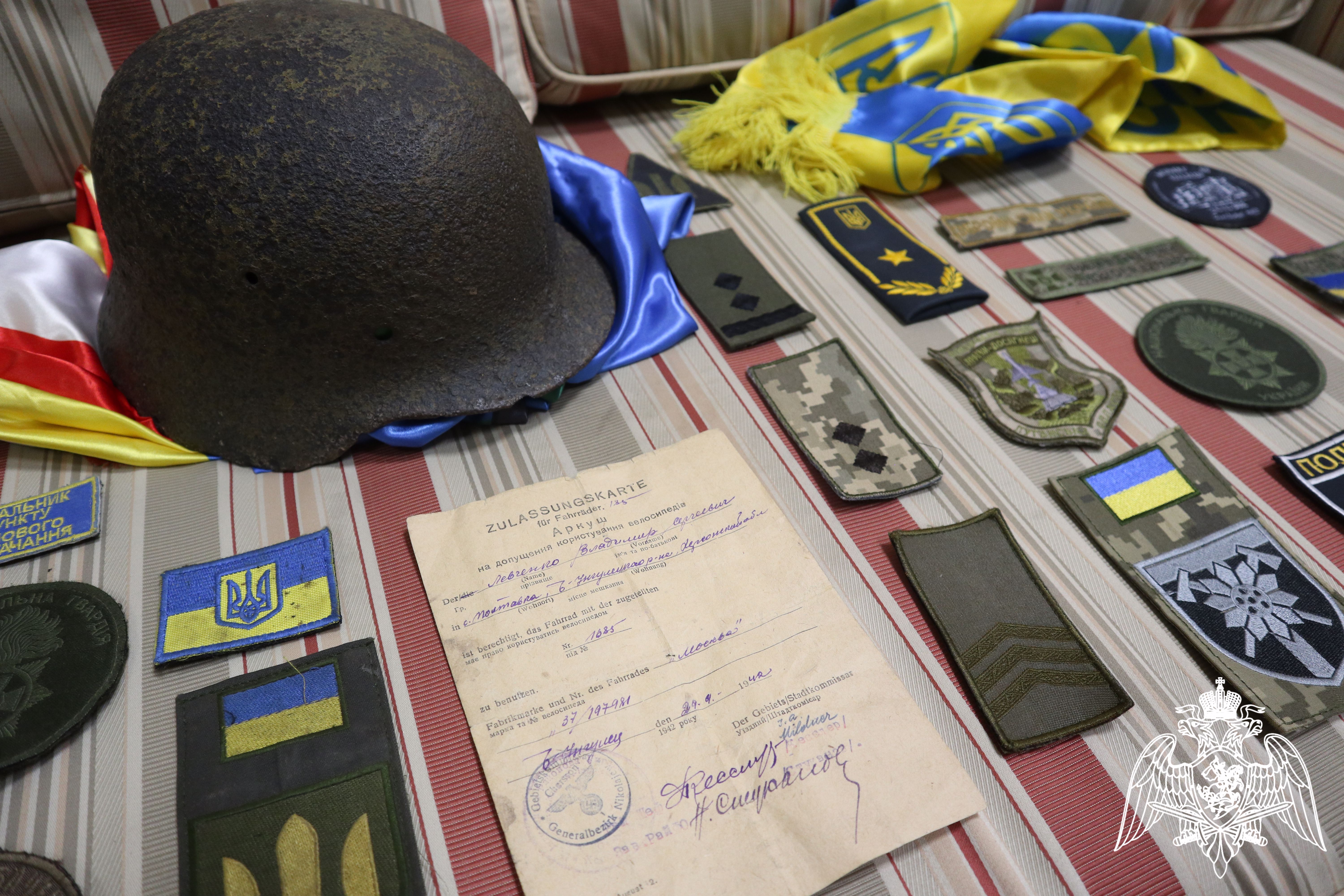 В ходе адресных мероприятий в Херсонской области военнослужащие Росгвардии обнаружили в доме, оставленном сотрудником СБУ, интересные находки. Хозяин дома бережно хранил пропуск велосипедиста, выданный местному жителю оккупантами в 1942 году и заверенный печатью третьего рейха. Кроме того, росгвардейцы обнаружили немецкие каски, элементы военной формы с фашистской символикой.