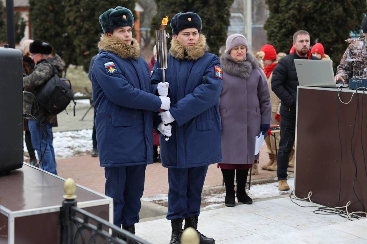 Центральным событием в Тербунах стало зажжение Вечного огня, частицу которого доставили из федерального военного мемориала «Пантеон защитников Отечества». Право зажечь огонь предоставили дочери участника специальной военной операции.