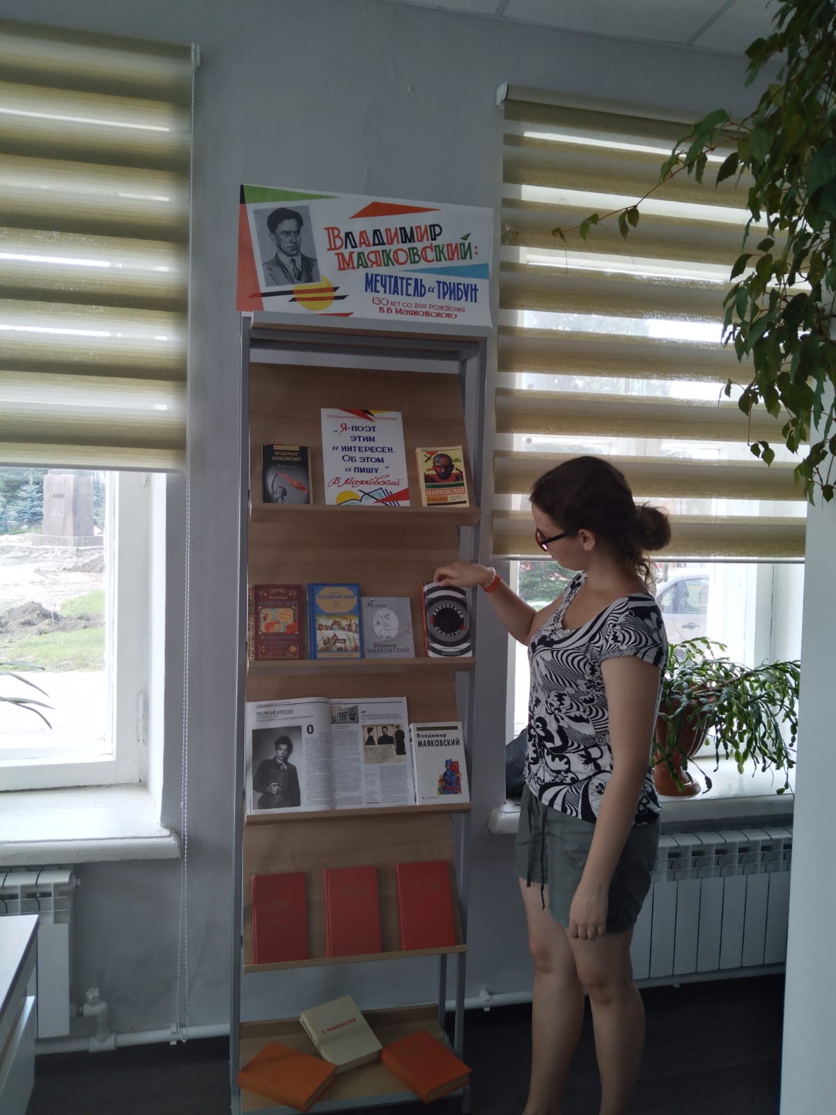 К юбилейной дате в зале художественной литературы обновленной библиотеки открыта выставка литературы «Владимир Маяковский: мечтатель и трибун». Книжная экспозиция читателям представлены лирика и сатира, поэмы и пьесы поэта-юбиляра очерки и критические статьи о нём.