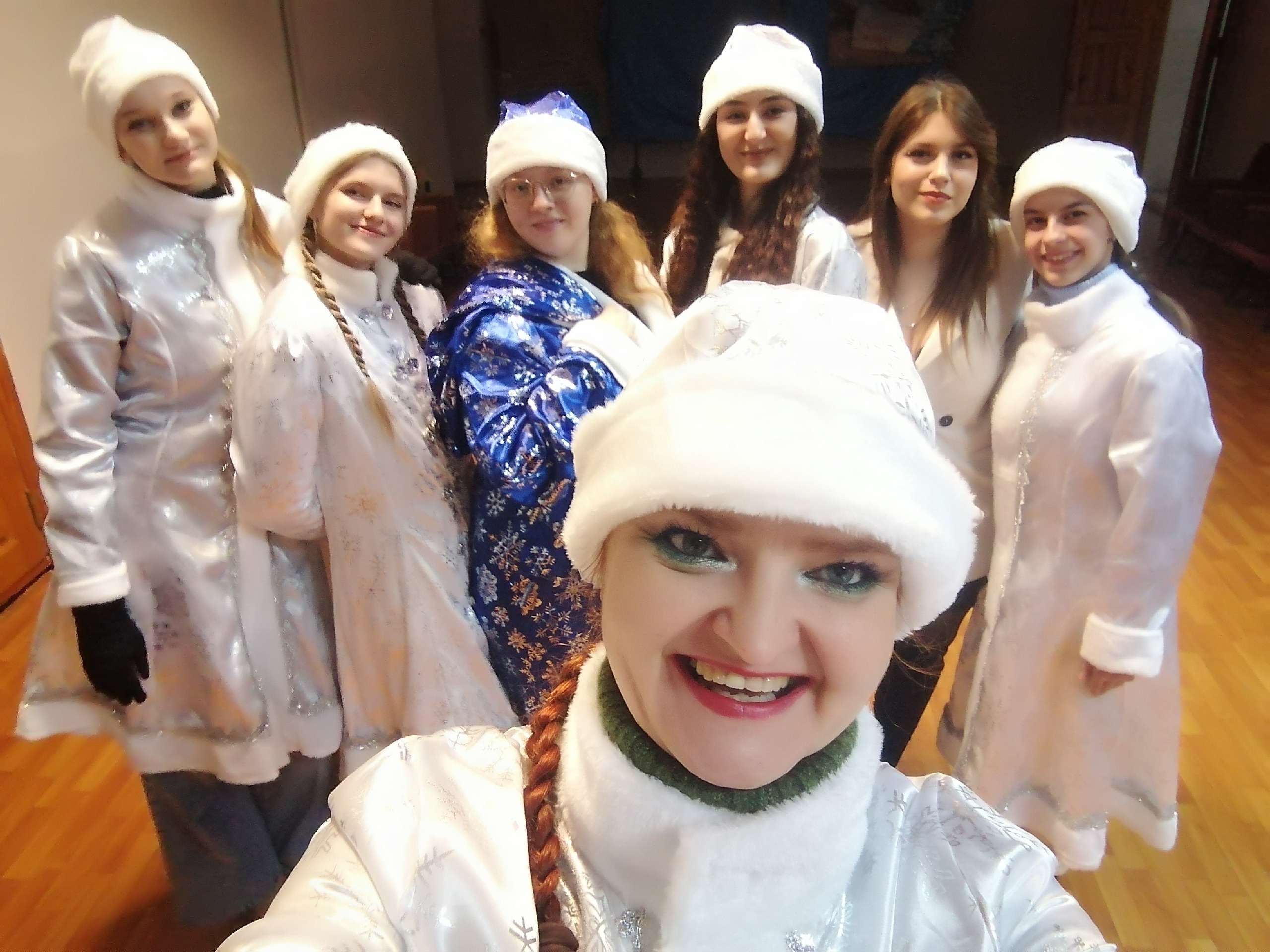 Под эгидой отдела молодёжи г. Ельца наши волонтеры стали частью игровой программы с художественными номерами в образе целой семьи медицинских Снегурочек и Деда Мороза