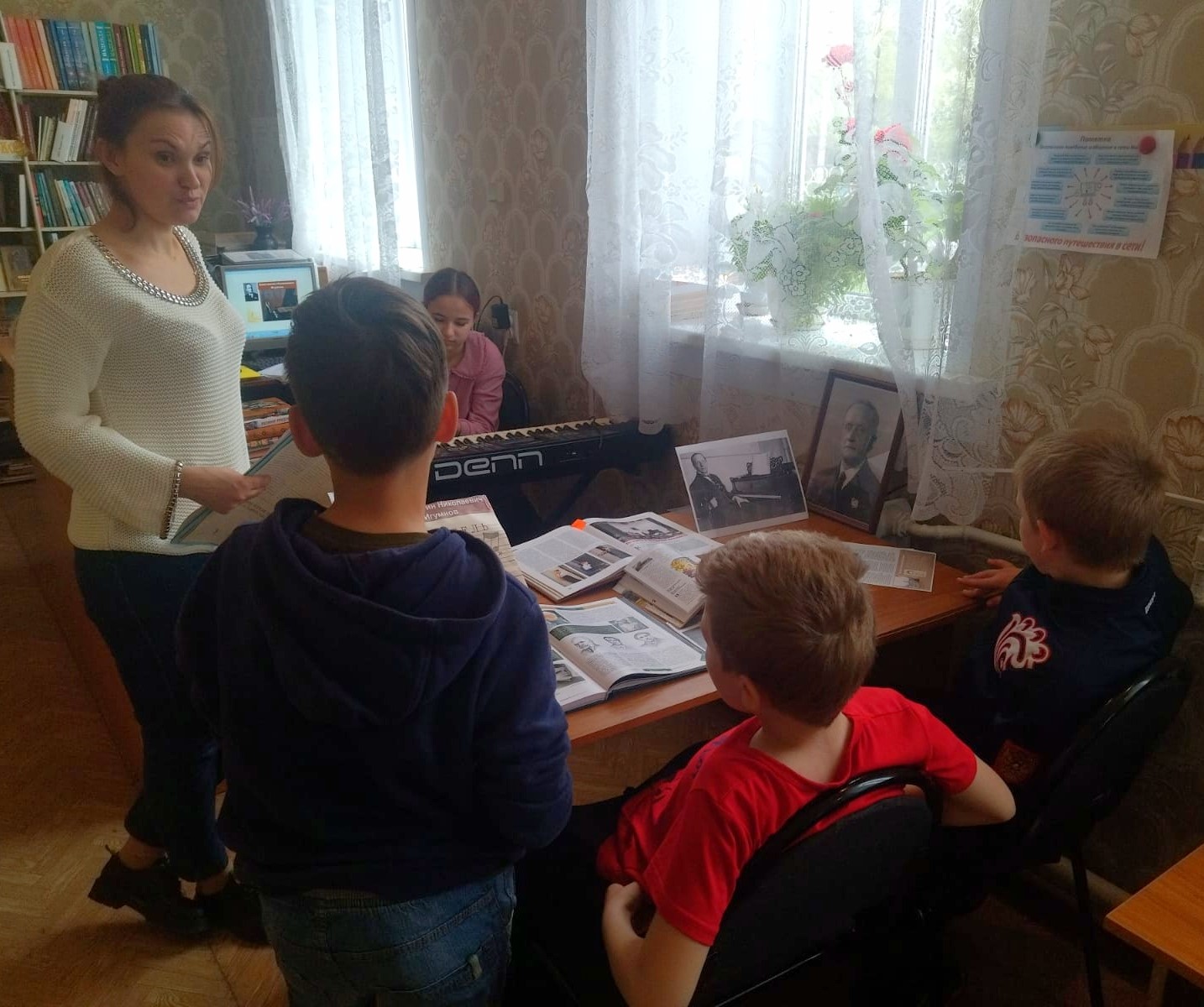 Из рассказа библиотекаря юные читатели узнали о жизни и творчестве гениального пианиста, особый интерес вызвал период детских лет будущего маэстро К.Н. Игумнова. Дети посмотрели документальный фильм "Константин Игумнов с учениками в консерватории" и прослушали отрывки из музыкальных произведений Чайковского в исполнении самого К.Н. Игумнова. Вниманию детей были представлены книги и газетные материалы посвященные жизни и творчеству великого русского пианиста, что позволило прикоснуться к великому творческому наследию, окунуться в атмосферу, в которой жил и работал Константин Николаевич, узнать о людях, которые свято хранят память о великом пианисте, развивают его творческие и педагогические идеи.