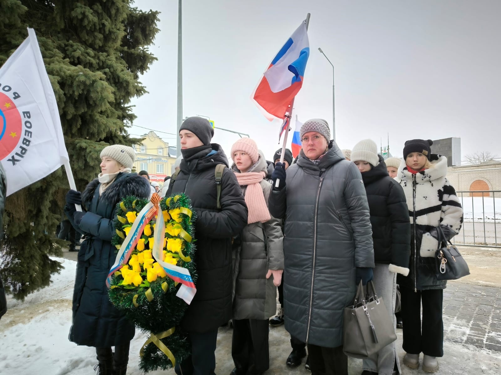 23 февраля студенты, педагоги и сотрудники колледжа приняли участие в общегородском митинге и возложении у мемориального комплекса “Вечный огонь” на площади Революции г.