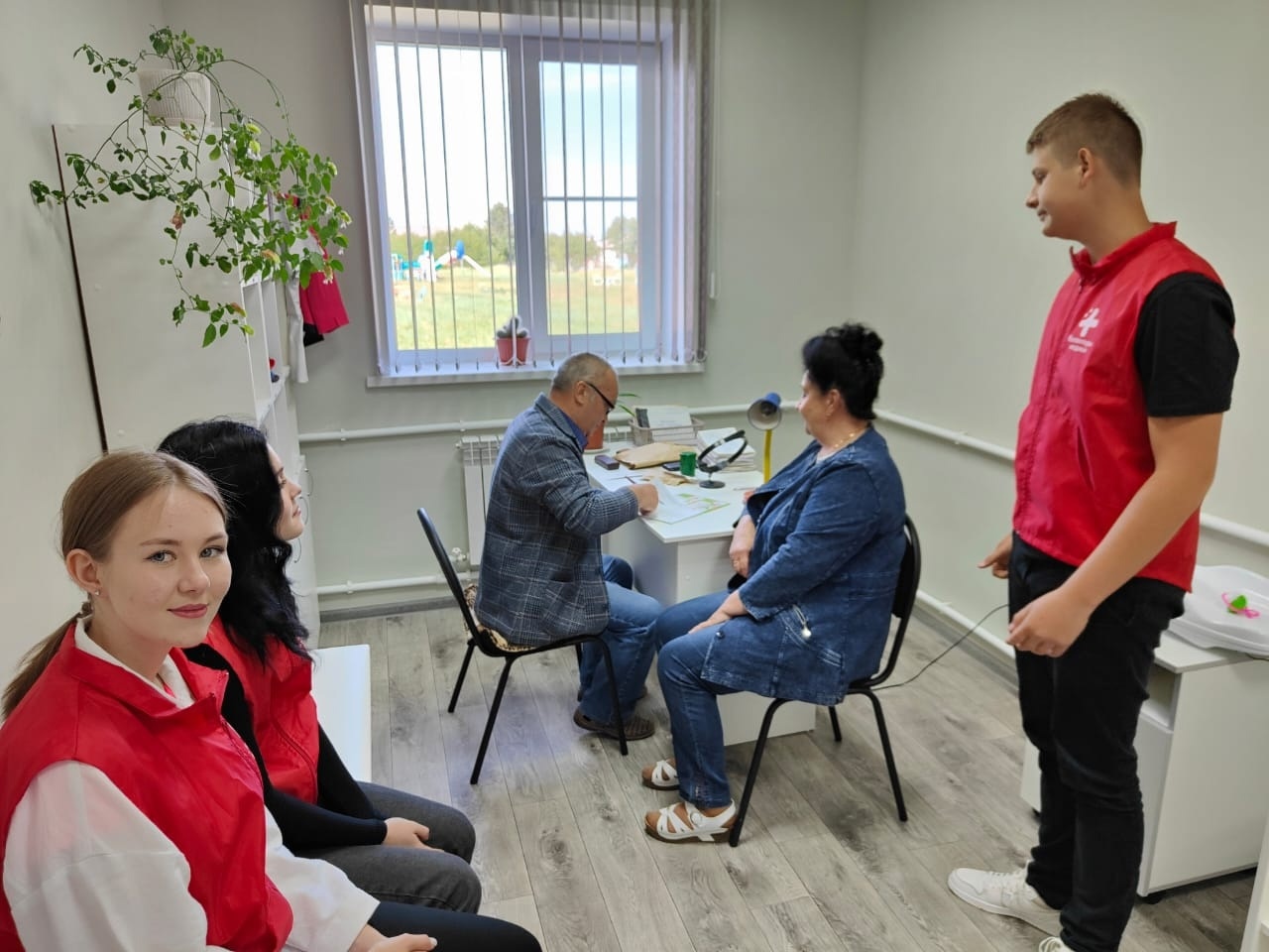 Ребята помогали пожилым людям пройти медицинский осмотр, занимались уборкой территории вокруг амбулатории, а также занимались информационным санпросвещением населения, раздавая буклеты и листовки о прохождении флюорографии.