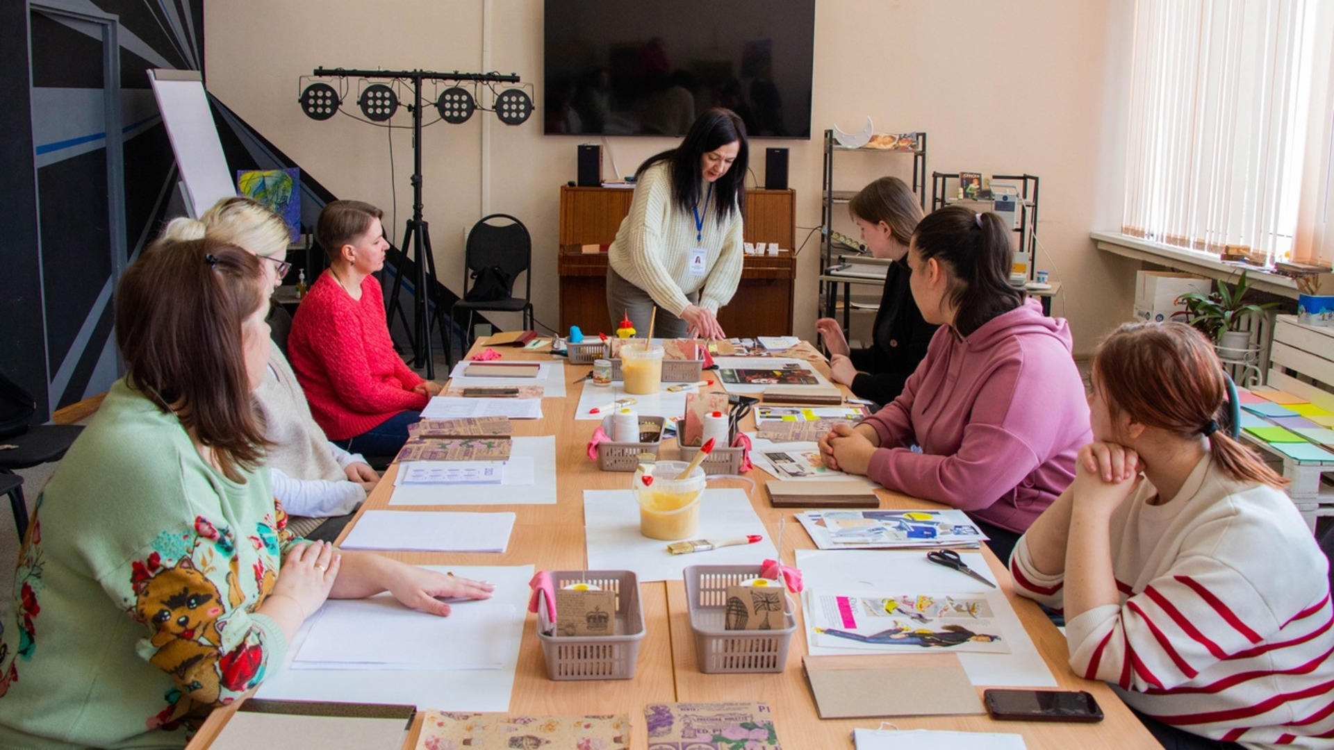 За одно занятие посетители осваивают процесс изготовления блокнота в твердой обложке полностью. Как собрать блок, правильно прошить и проклеить заготовку, какие инструменты и материалы для этого можно использовать — наши гости получают от ведущей не только все эти знания, но и практическую помощь на каждом этапе процесса.