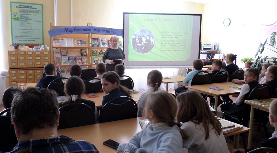 Юные читатели узнали много интересного о жизни и творчестве писателя. О том, что Константин Дмитриевич известен как великий русский педагог, но не меньшую известность принесли ему рассказы, написанные для детского чтения. Специалист библиотеки Калашникова Н.И. подчеркнула, что благодаря этому замечательному педагогу появились учебные пособия «Родное слово» и «Детский мир», по которым стало легко и интересно учиться в школах русским детям. Ребята подробнее познакомились с рассказами: «Как рубашка в поле выросла», «Четыре желания», «Умей обождать», «Ветер и солнце», после прочтения каждой сказки обсудили поступки героев, поделились мнениями, ответили на вопросы литературной викторины. Дети показали хорошие знания выполняя задания «Узнай произведение по тексту», «Загадки с экрана», «Читаем сказку». В завершение книжного путешествия ребята просмотрели мультфильмы «Проказы старухи зимы», «Варёный топор», снятые по сказкам в обработке К. Д. Ушинского. В незатейливой познавательной форме писатель учит детей трудолюбию, честности, смелости, щедрости, любви к своему Отечеству и к людям, которые живут рядом.