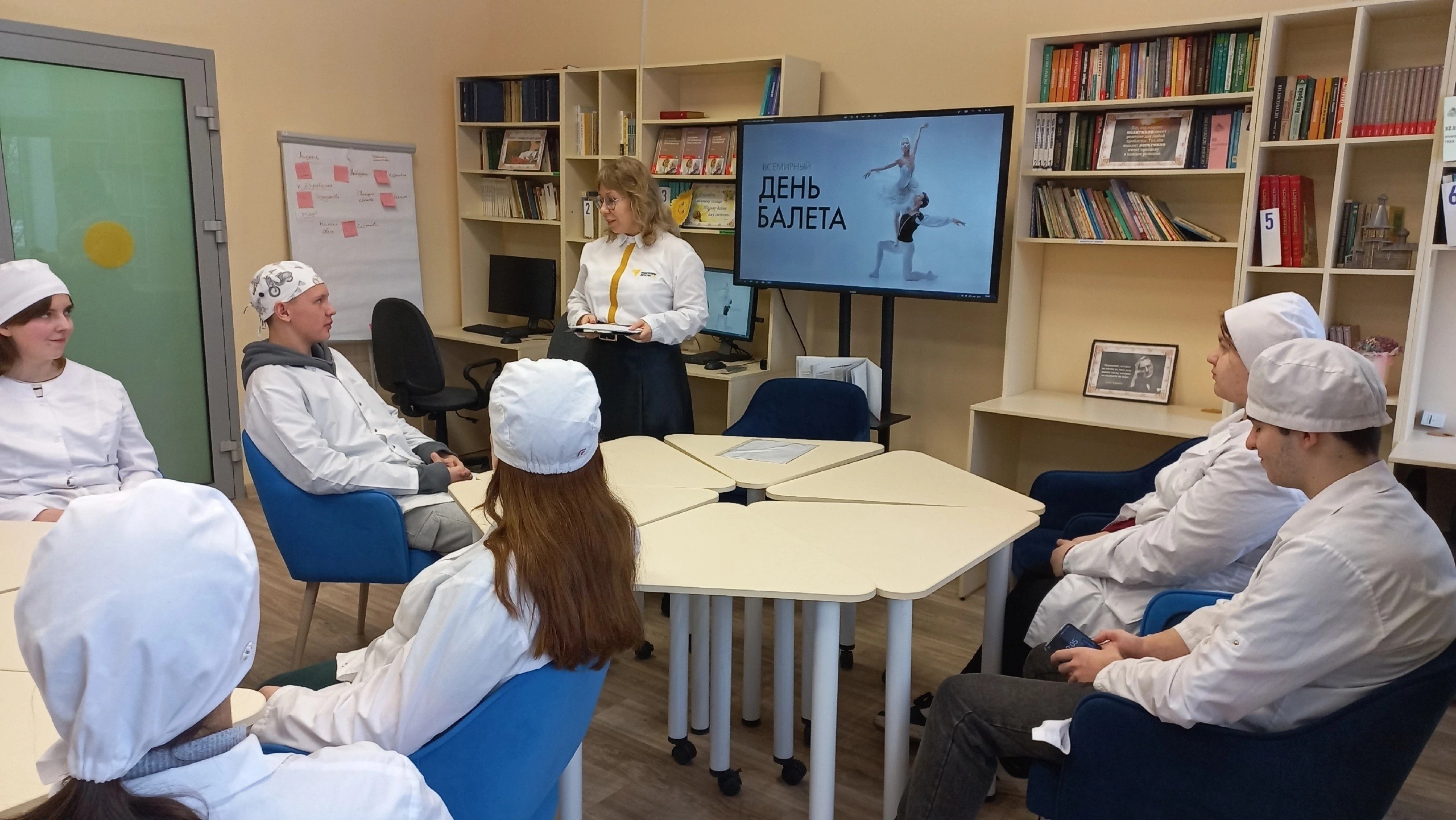 Мероприятие прошло в креативном пространстве колледжа – КУББе. Ребята узнали об истории становления балета как хореографически-театрального направления, о выдающихся артистах балета.
