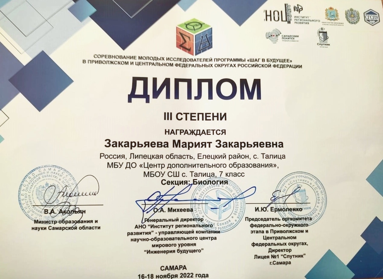 Подведены итоги соревнований молодых исследователей «Шаг в будущее» в Центральном федеральном округе Российской Федерации.