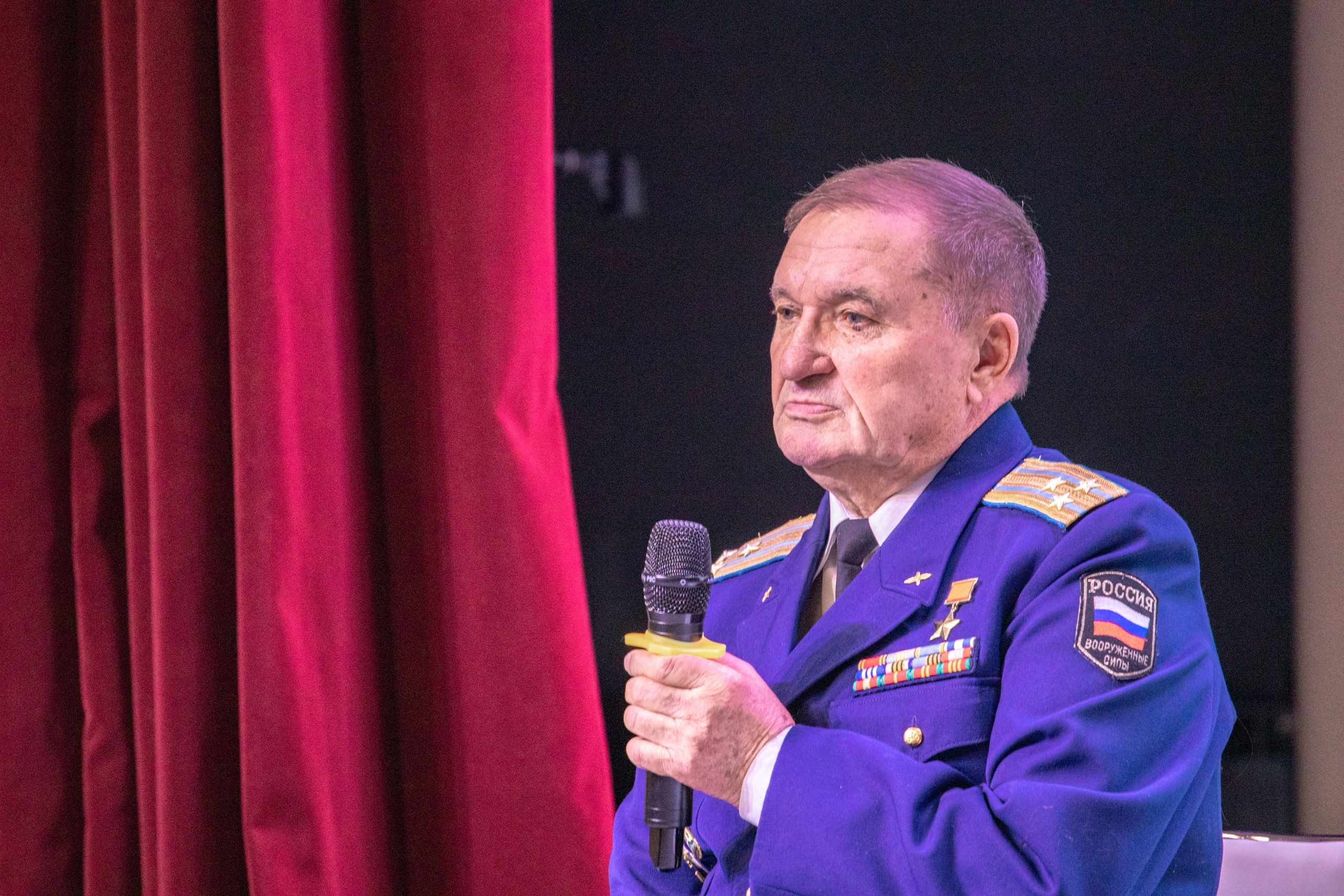 В ДК Железнодорожников в рамках Всероссийского проекта “Диалоги с Героями” прошла встреча с Героем Союза, советским и российским офицером, летчиком военно-морской авиации Ю. И. Чур