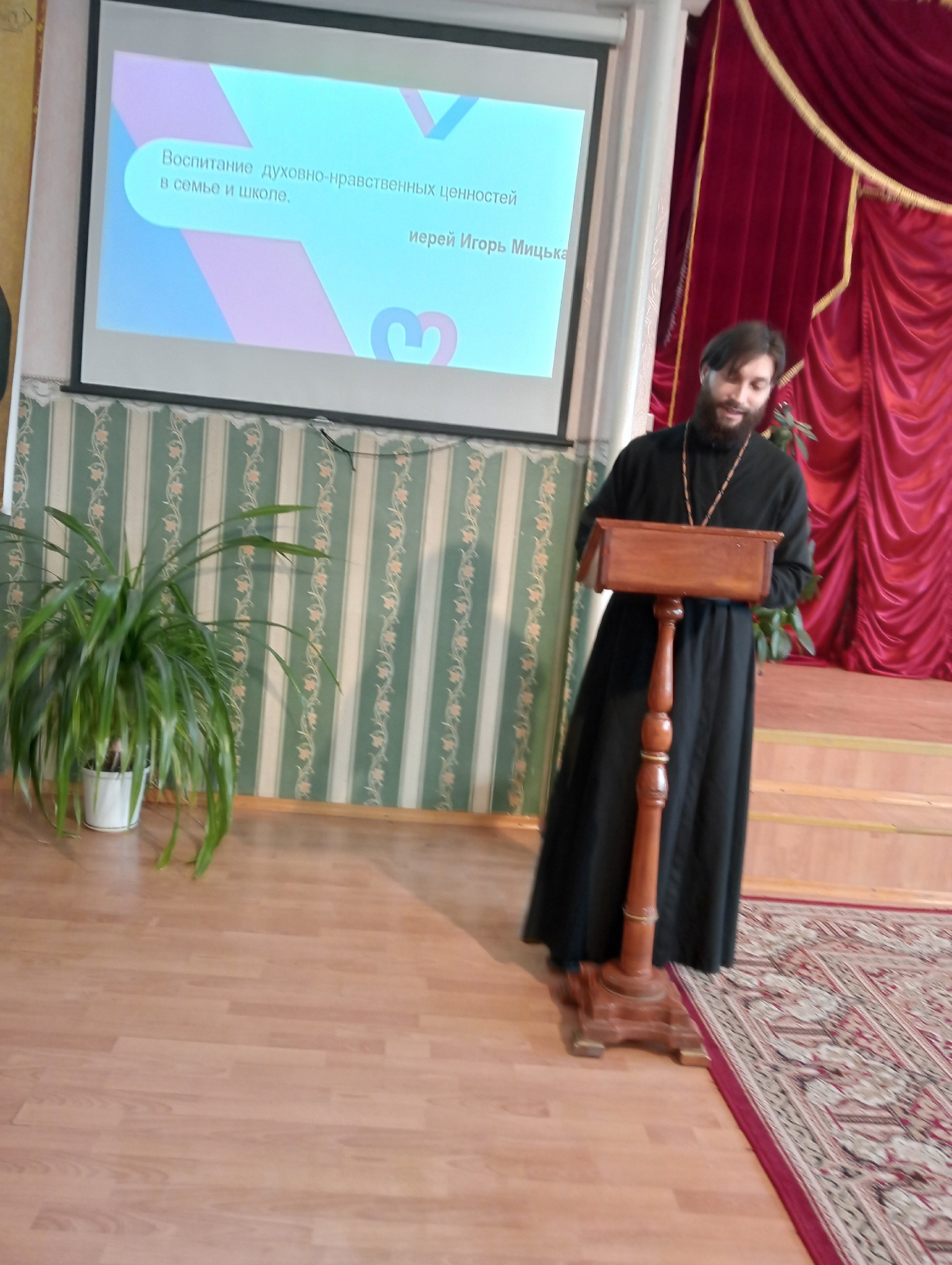 В заседании педагогического совета активное участие принял иерей Игорь Мицька. Тесный контакт и сотрудничество с клириками православных храмов города Ельца является особенностью организации воспитательного процесса в гимназии. Батюшка отметил, что взрастить здоровых и счастливых молодых людей, способных к созданию полноценных православных семей, невозможно без привития традиционных духовно-нравственных ценностей, выработанных Православием, воспитания целомудрия и послушания.