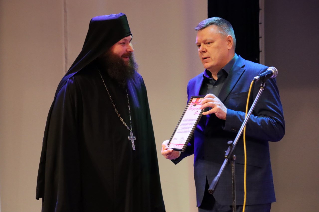 Выступление началось с приветственного слова главы района и руководителя Воскресной школы д. Ивановка иеросхимонаха отца Виталия (Морозова).