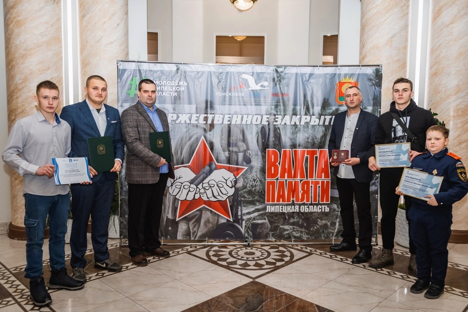 Закрытие регионального этапа Всероссийской акции "Вахта Памяти" прошло в большом зале Правительства Липецкой области 20 декабря 2024 года.