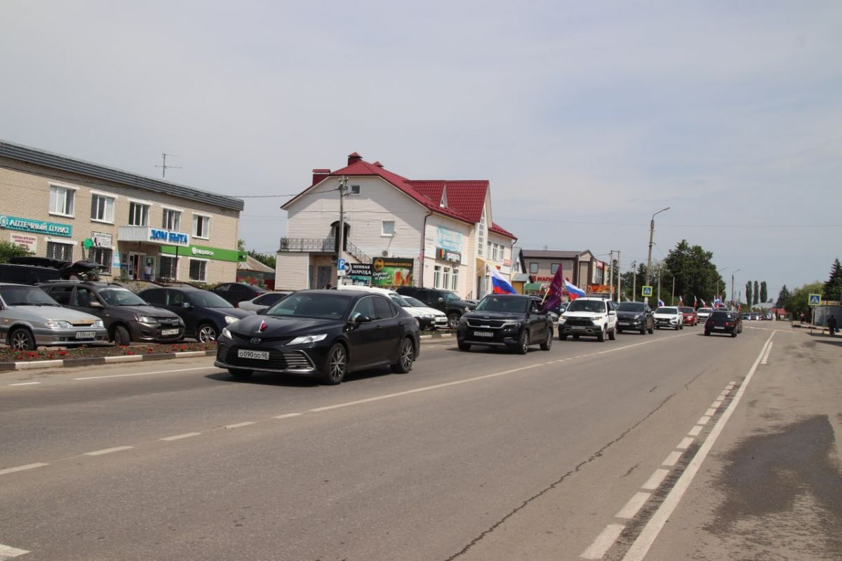 Краснинский район встретил праздник традиционным автопробегом. Десятки машин, украшенных флагами нашей страны, проехали по центральным улицам.