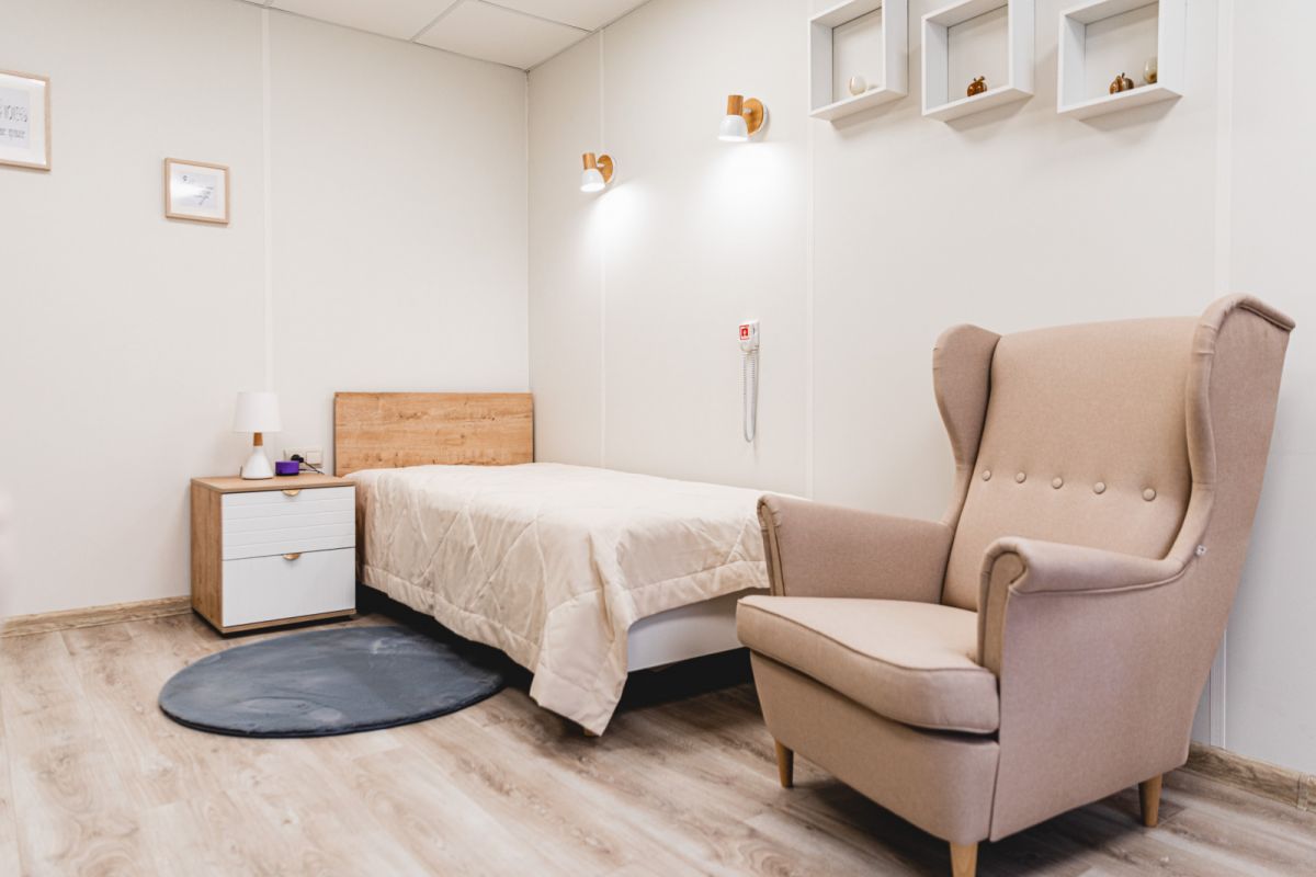 Реконструкция началась весной. За это время отремонтировали все помещения, кабинет врача, холл и коридоры. Метраж комнат изменился с 8 метров до 13 и даже 20 кв.м. Сейчас здесь 74 современных жилых комнаты с одноместным размещением, санузлами, телевидением. Половина из них оборудованы системой «Умный дом». Проживающие уже оценили удобство – с помощью голосового помощника легко включают свет, ночник, телевизор, вызывают медсестру.