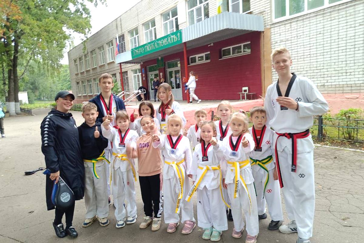 Воспитанники секции тхэквондо устроили показательные выступления перед входом в 49-ю школу Липецка.