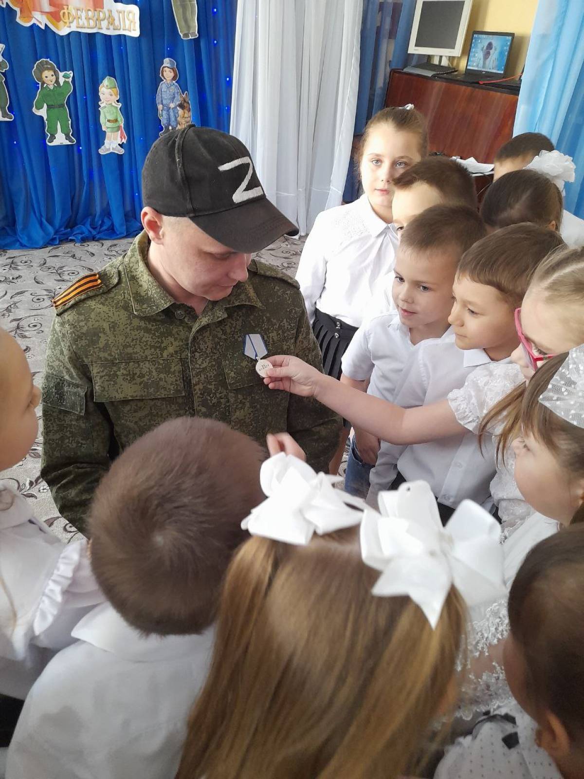 Дети исполнили концертные номера и в преддверии Дня защитника Отечества подарили гостям самолетики. Участник СВО рассказал ребятам о важности утренней зарядки, о пользе каши, о дружбе. Малыши с интересом слушали героя и рассматривали его медаль.