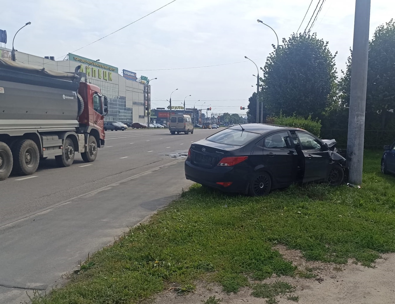 В Липецке в этот вторник, 25 июля, на улице Студеновской об столб разбился Хендай Солярис.
