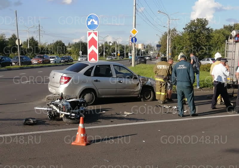 В Липецке на выезде с Полиграфической мотоциклист столкнулся с ехавшей по Московской «Ладой Гранта».