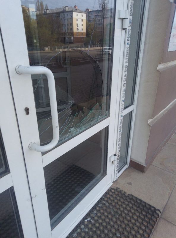 На штаб липецкого обкома КПРФ снова совершено нападение. Рано утром был разбит стеклопакет входной двери.