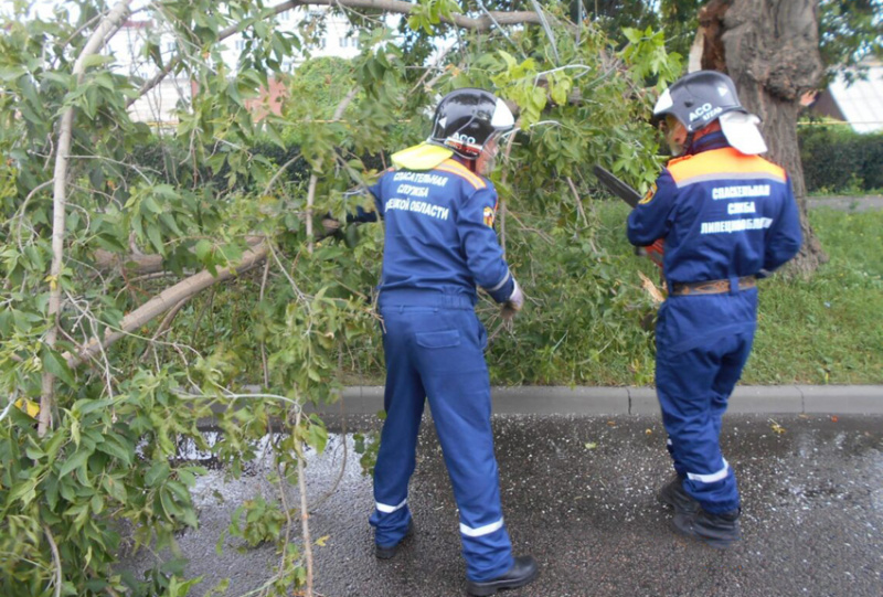 Сотрудники дежурной группы аварийно-спасательного отряда в течение получаса распилили дерево на части и очистили дорогу.