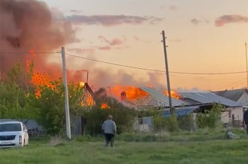Судя по видео, загорелись два соседних дома, причём столб пламени вырос до нескольких метров.