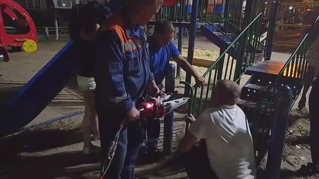 Инцидент произошёл на улице Вермишева. Двухлетний ребёнок застрял в ограждении на детской площадке. Освободить малыша никто из присутствующий не мог, потому что его голова оказалась зажата металлическими прутьями. Пришлось вызывать спасателей. При помощи гидравлического оборудования они разжали прутья и спасли ребёнка.