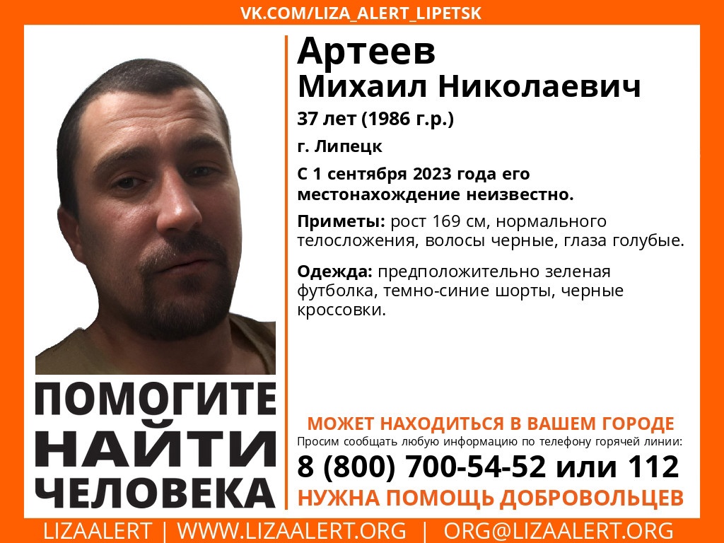 В Липецкой области ищут пропавшего 37-летнего мужчину. В пятницу, 1 сентября, Михаил Николаевич Артеев вышел из дома, перестал выходить на связь с близкими и с того момента о его местонахождении ничего не известно.