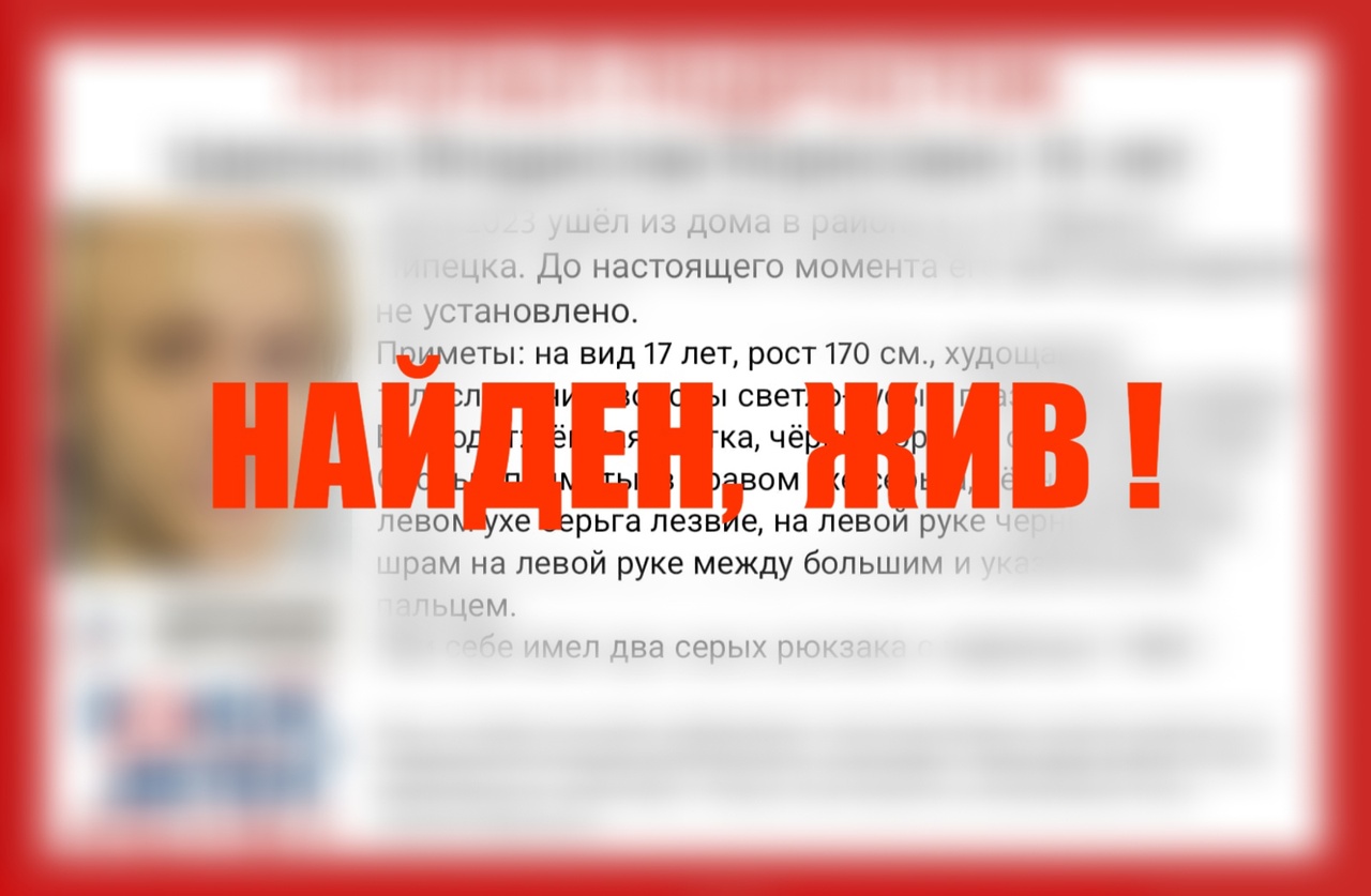 «Найден! Жив», — обновила ориентировку липецкая областная общественная организация «Поиск пропавших детей».