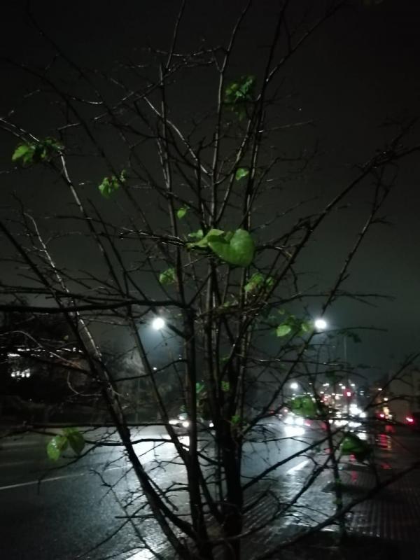 В Липецке ночью дождь со снегом и сильный ветер