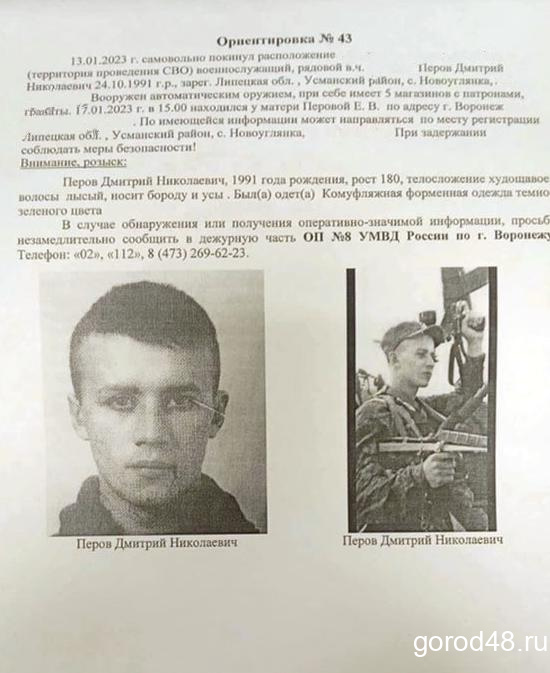 В пресс-службе ГУМВД России по Воронежской области GOROD48 информацию о розыске комментировать не стали, посоветовав обратиться в Министерство обороны.