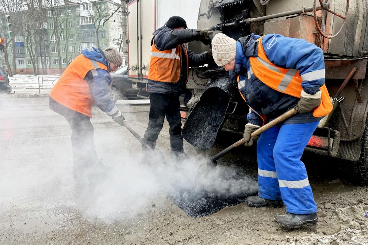 Слабые морозы - лучшее время для проведения ямочного ремонта дорог.