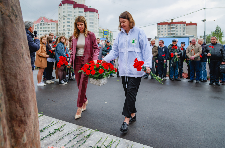 Собравшиеся почтили память погибших минутой молчания и возложили цветы к мемориалу.