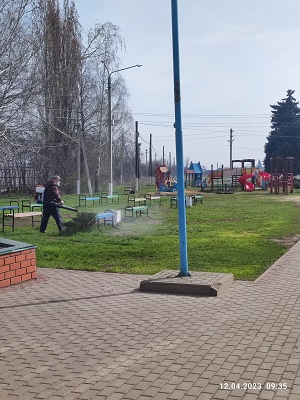 Администрация сельского поселения Ленинский сельсовет провела 12 апреля на территории поселения Дезинсекционные мероприятия (обработка от клещей) территорий общего пользования, де