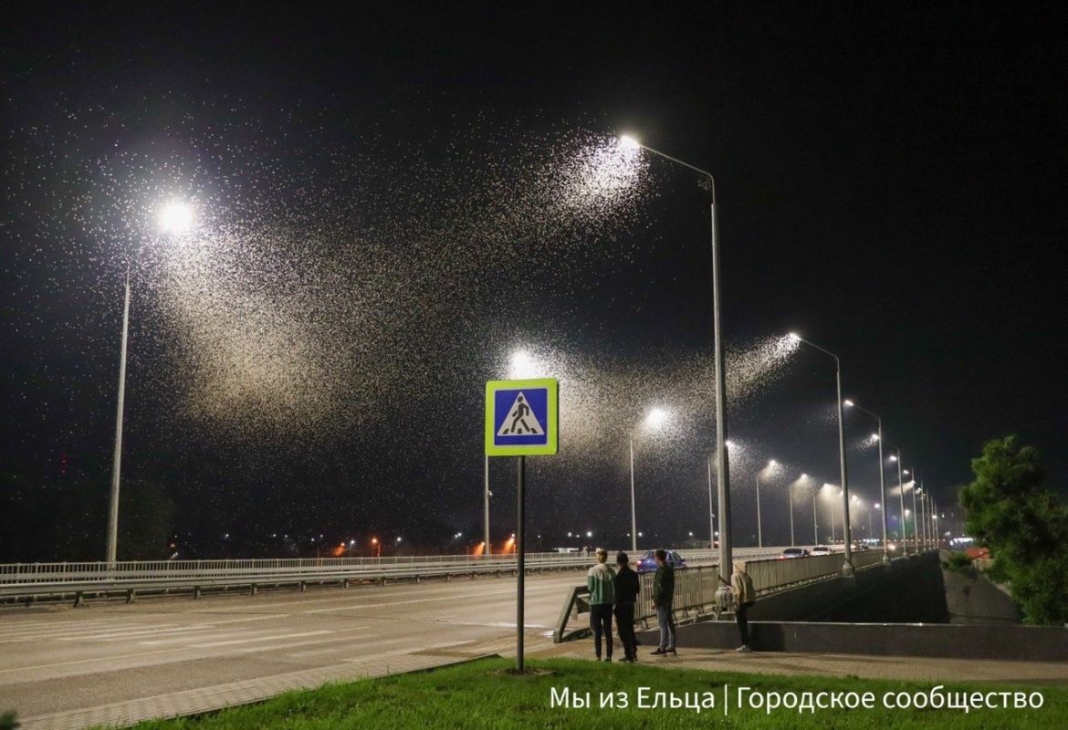 Нашествие насекомых наблюдали жители Ельца минувшей ночью. Тысячи мотыльков поднялись на Каракумским мостом над рекой Сосна. Местные жители начали делиться фотографиями и видео с места событий в социальных сетях. Никто из них подобного ранее не видел.