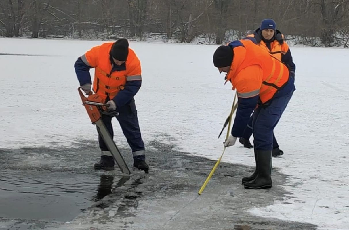 Прорубь размером 2,5 на 4 метра уже вырезали.