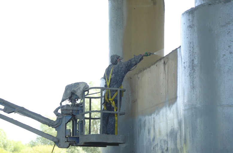 – Сейчас выполнено порядка 60% от общего объема работ. Наши специалисты с помощью цементного раствора и бетона проводят пескоструйную очистку и ремонт опор и пролетных строений, – рассказал начальник участка производственных работ подрядной организации Эдгар Луговских. – Там, где эти работы завершены, уже приступили к покраске железобетонных конструкций.