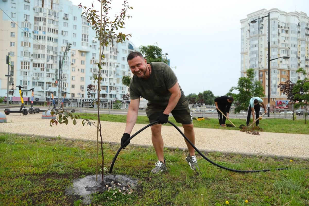 45 декоративных клёнов и яблонь посадили сегодня в Липецком городище.