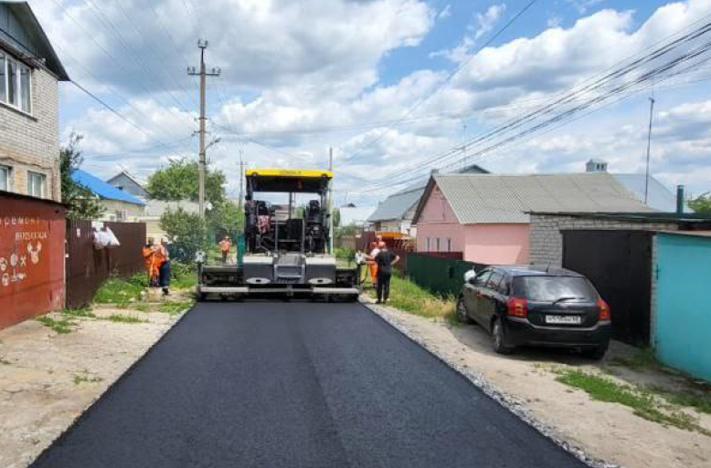 В областном центре на улице Энтузиастов приступили к укладке верхнего слоя покрытия.