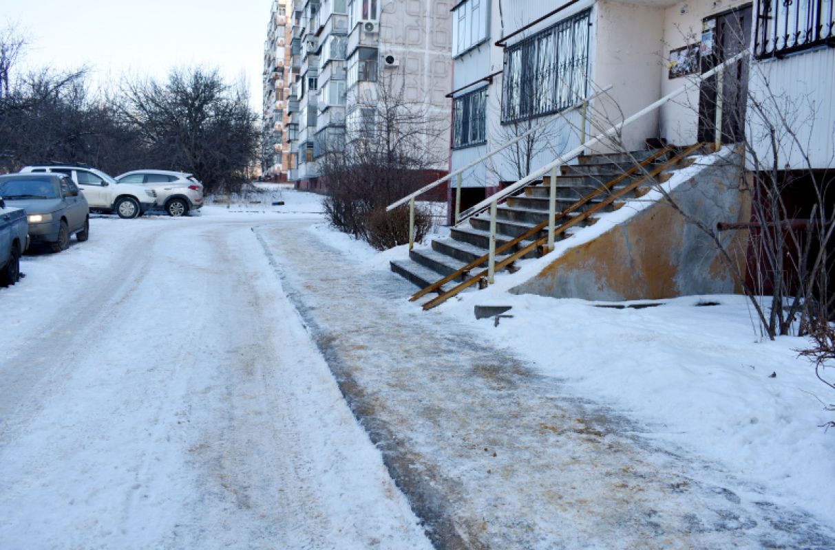 А вот у жильцов дома № 107а на улице Ковалева есть претензии к своей управляшке. Их территорию убирают редко, около подъездов наледь и снег, а с крыши свисают сосульки. Во время проверки всё, конечно, было убрано. Однако жалобы людей никуда не денешь.
