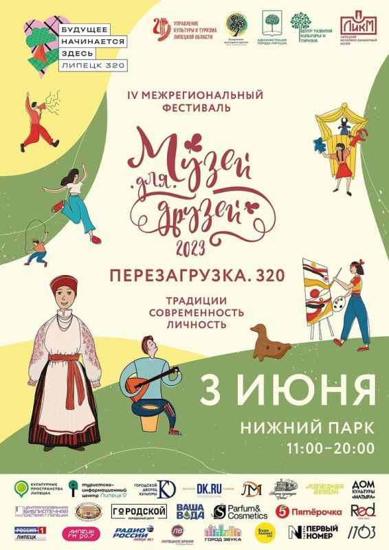 3 июня в Нижнем парке Липецка пройдёт межрегиональный фестиваль «Музей для друзей. Перезагрузка» (6+). Он посвящён дню рождения Липецка, а проводит его Липецкий историко-культурный музей. Кроме этого в нём будут участвовать музеи из Воронежа, Тамбова, Брянска и Москвы.