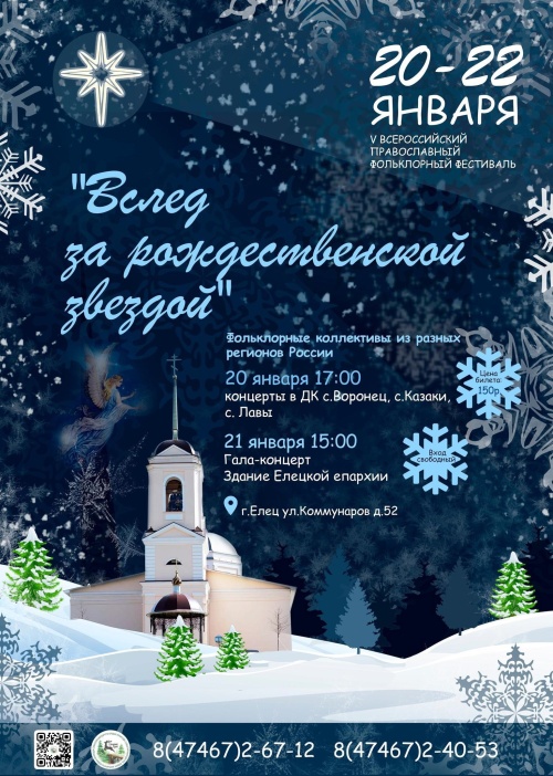 Гала-концерт всех участников фестиваля состоится 21 января в 15.00 в здании Елецкой епархии по адресу: г. Елец ул. Коммунаров д.52