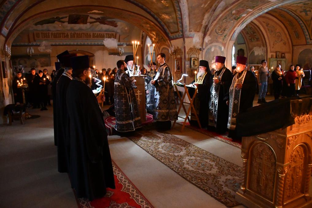 После чтения канона продолжился чин Великого повечерия, содержащий особенные покаянные псалмы, песнопения и молитвы.