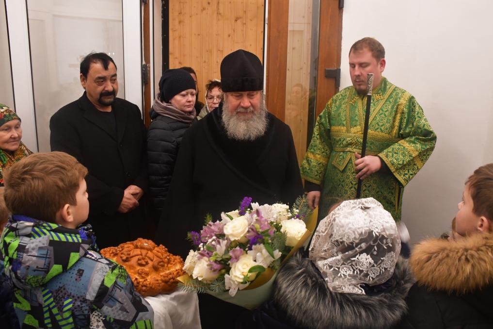 У церковных врат с букетом цветов и хлебом с солью Владыку встречали дети воскресной школы.