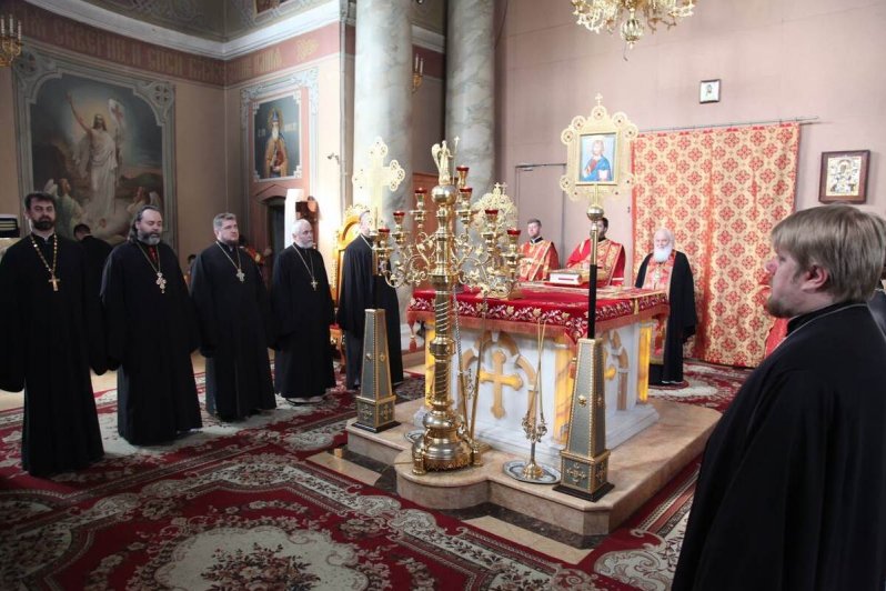Его Высокопреосвященству сослужили: протоиерей Василий Бильчук, настоятель собора; архимандрит Герман (Ледин), благочинный храмов Добровского церковного округа; протоиереи: Владимир Сельцов, настоятель храма Всех святых, в земле Русской просиявших г. Липецка; Всеволод Бойко, настоятель храма Покрова Пресвятой Богородицы г. Липецка; Константин Гришин, настоятель храма Рождества Христова г. Липецка; Владимир Максимчук, ключарь собора, Алексий Носач; иереи: Сергий Гришанов, Виктор Архипкин, Александр Алешин, Александр Лихошерст; диаконы: Андрей Кантарюк, Олег Мальцев, клирики собора; Виктор Коростылев, клирик храма Рождества Христова на Арктической г. Липецка.