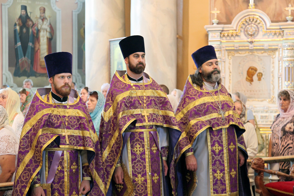 Его Высокопреосвященству сослужили протоиереи: Василий Бильчук, настоятель собора, Владимир Максимчук, ключарь собора, Алексий Носач; иереи: Сергий Гришанов, Виктор Архипкин, Александр Алешин, Павел Пигилев (утро); диаконы: Андрей Кантарюк и Олег Мальцев, клирики собора.