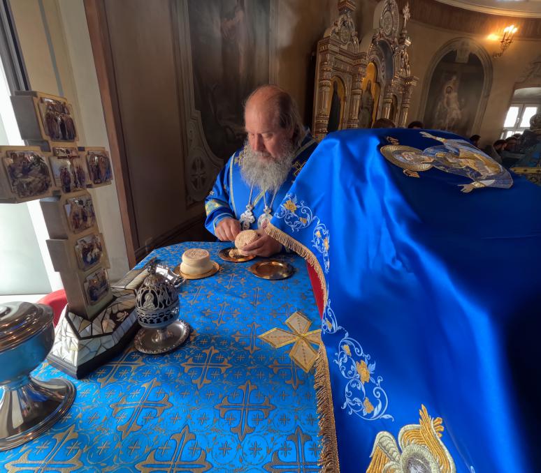 Затем Высокопреосвященнейший митрополит Арсений возглавил Божественную литургию в сослужении епископа Максима, епископа Евфимия и духовенства митрополии.