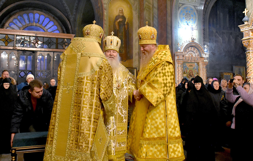 Преосвященным архипастырям сослужили: архимандрит Трифон (Голубых), благочинный обители; иеромонахи: Гавриил (Мельников), Сергий (Калинин), Даниил (Ведмедь), Тихон (Спасенов); иеродиаконы: Паисий (Боев), Александр (Мантров), Ираклий (Гарькавый), Иордан (Крылов); диакон Николай Рошко, клирики монастыря.